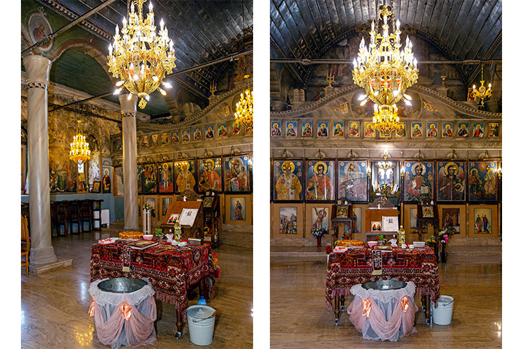 разстояние. Храмът не е от най-просторните и светли, но това не